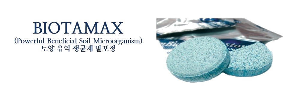 바이오타맥스(Biotamax)는 작물 생장에 유익한 토양 미생물군의 증식을 활성화시키고, 작물의 질병성 균 증식을 억제하는 토양 개량제입니다. 미국 커스텀바이오사가 다년간 연구 실험을 통해 세계 최초로 개발한 발포정 타입의 천연미생물 제품입니다.